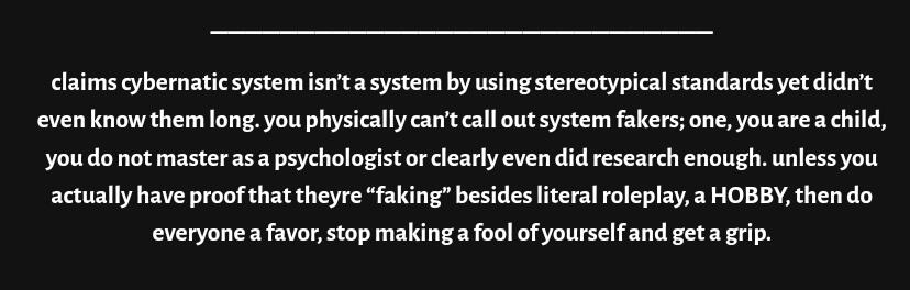yes i am a child but dream smp started in 2020 and everywhere i look it says its REALLY rare for did to form at the age i calculated they were and even actual systems said ityou're right i have no proof! but neither am i forcing people to believe me so if you don't then okay idfc it's YOUR LIFE not mineyou need to get a grip too so sorry cope