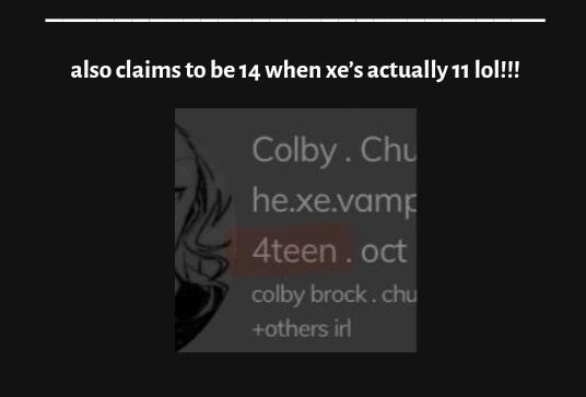 pretty funny coming from someone who leaked my age too! but carry on (also the 4teen bit ISNT from the actual card, and i have proof when i get to that part)