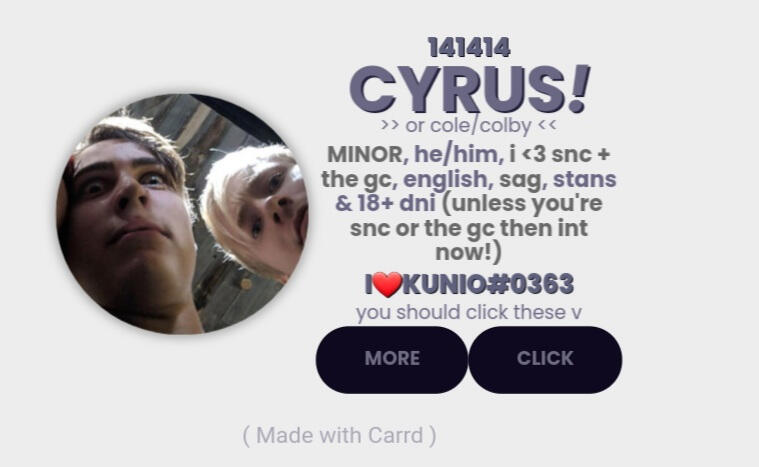 LMFAOOO i'm so sorry but this isnt the carrd wtf dawg my birthday isnt even october and i only have he him pronouns! waiting for the day people realize sam and colby DO have a fanbase