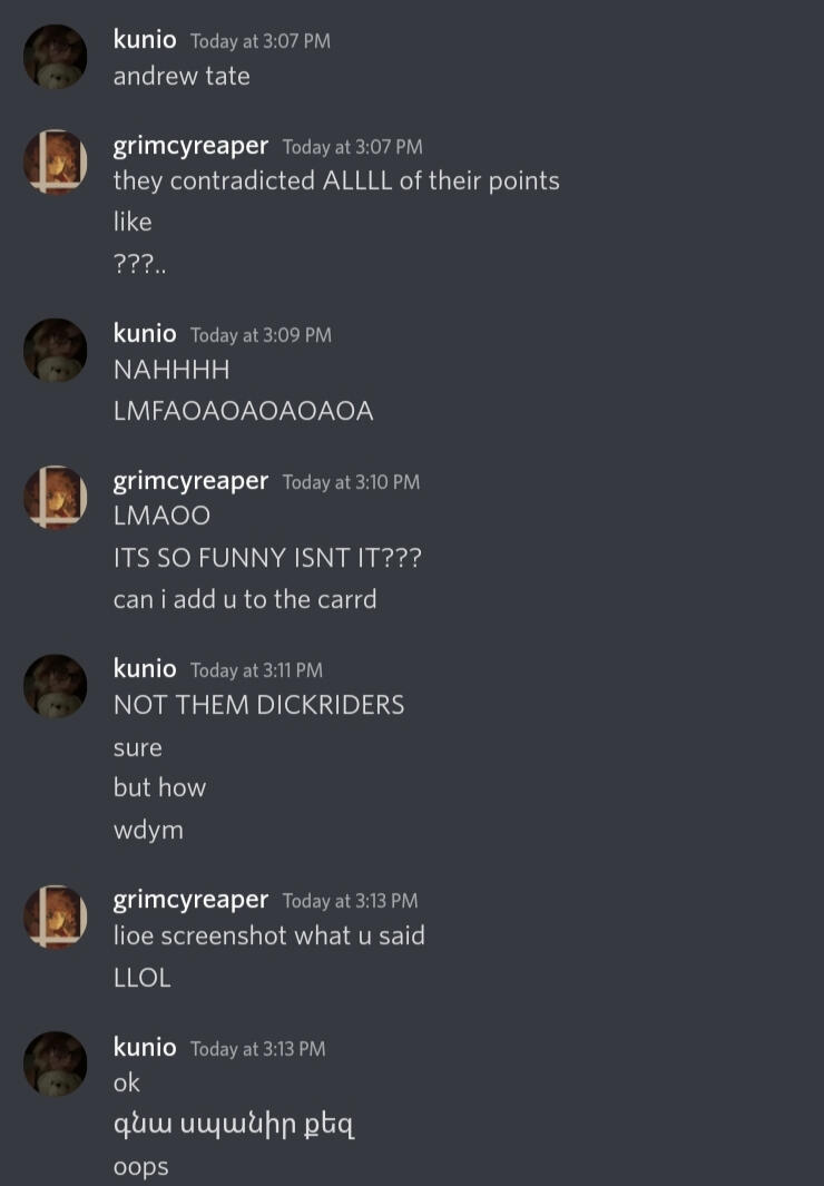 has my discord 0363 tag my names and the 14 at the top is my lucky number so don't get ideas, idk where u got that shit from but u got caught lmaoo
